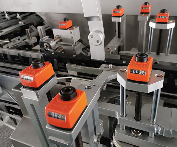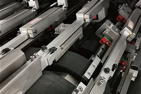 18組連續(xù)式推桿裝盒系統(tǒng),采用預(yù)壓力導(dǎo)軌,保證運(yùn)行的同步精度和高速的穩(wěn)定性。